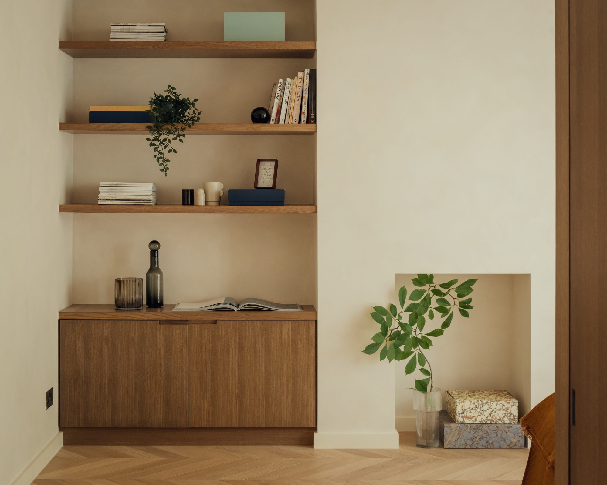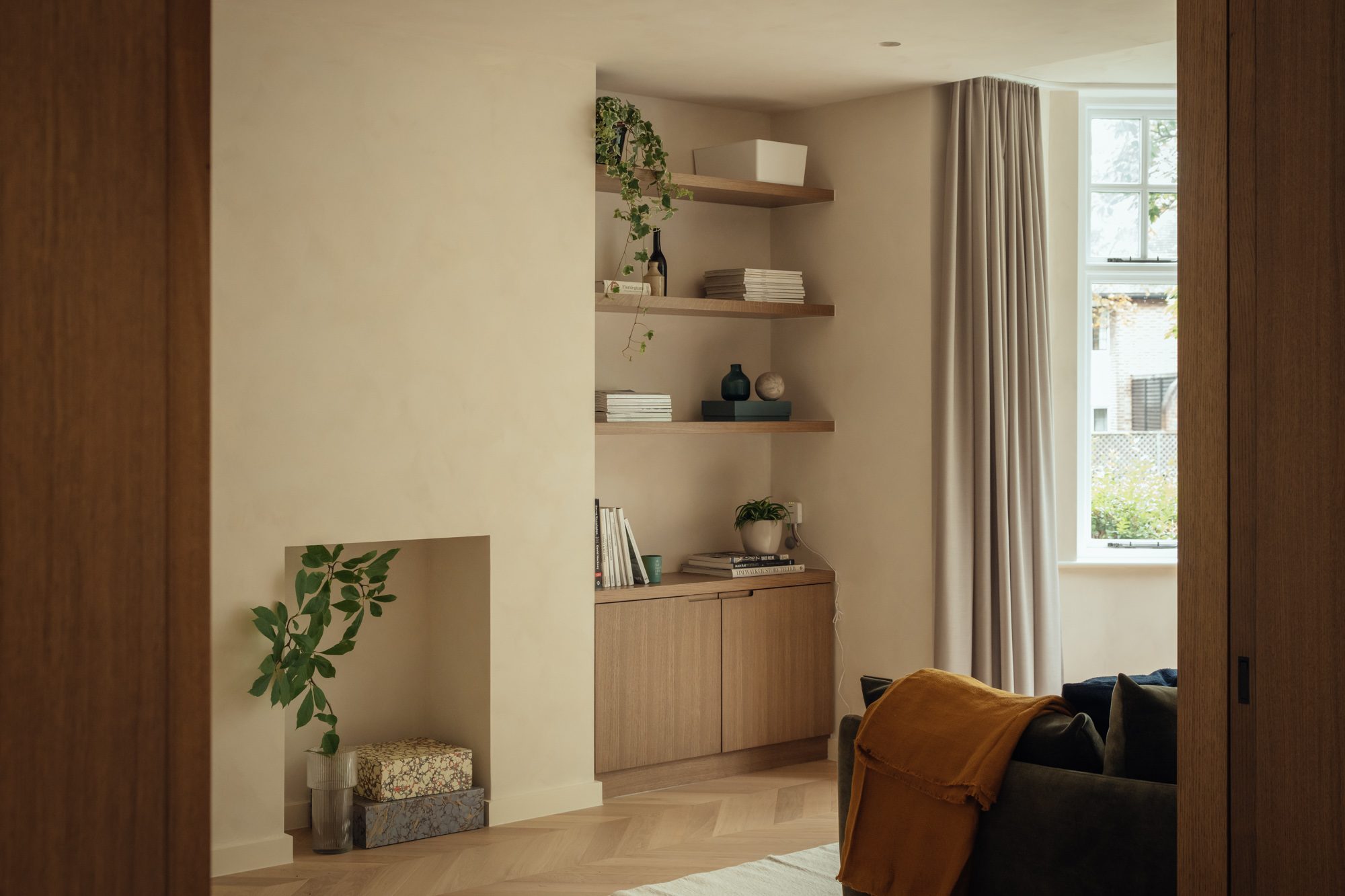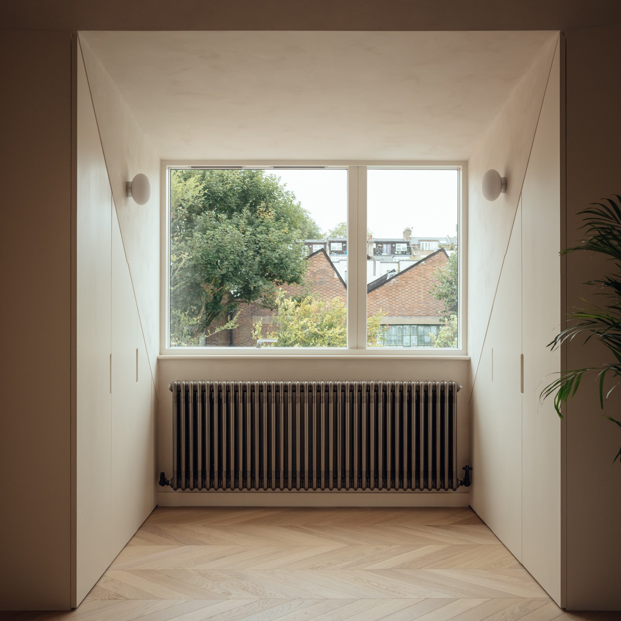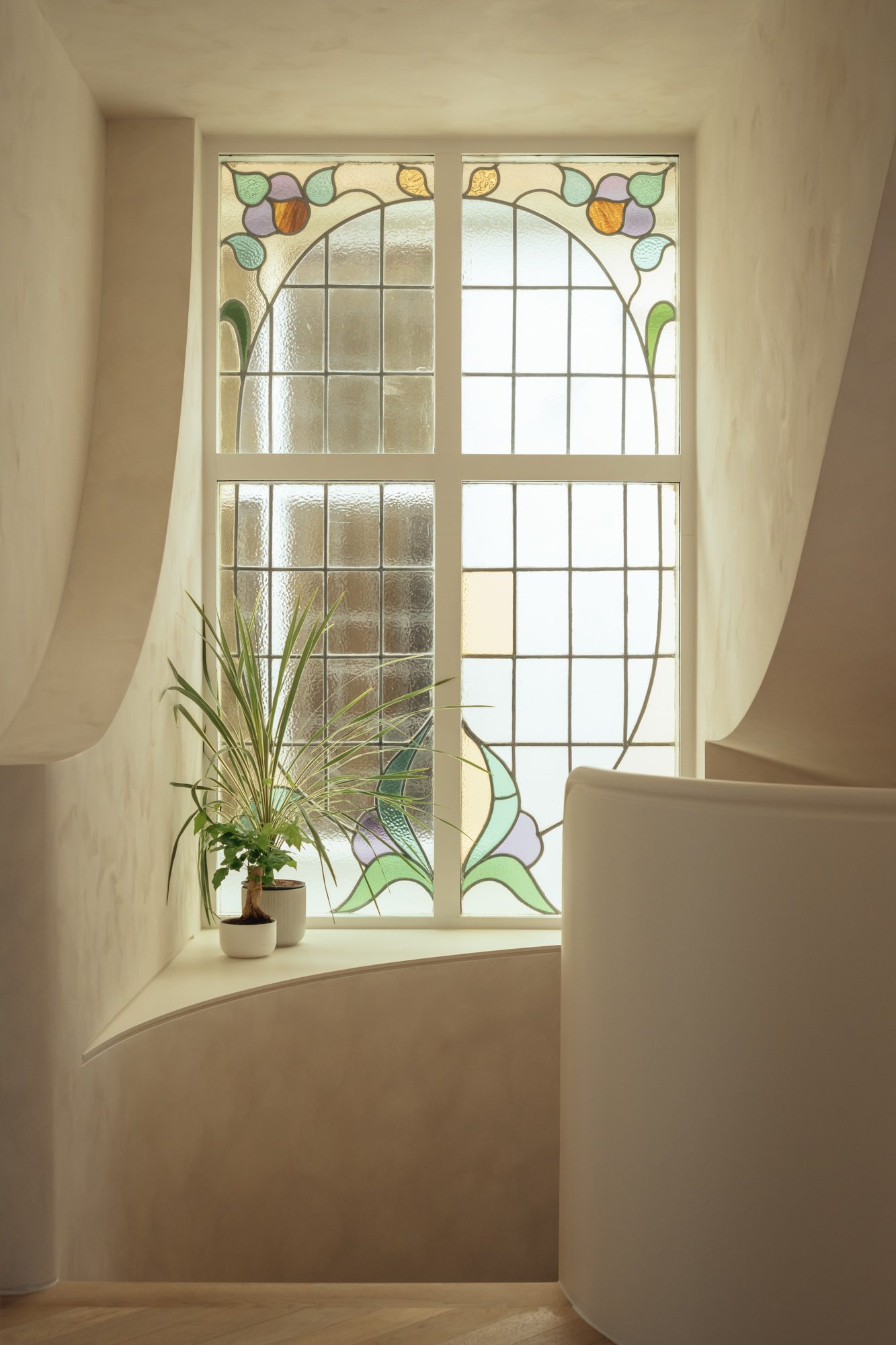 Our favorite space in the house is the newly extended kitchen and dining area that opens directly onto the garden. The transformation has been incredible— The large glass sliding doors and roof light flood the space with natural light, making it feel airy and welcoming even when it is a typical gloomy day in London. The new staircase centered around the retained stained glass window is a showstopper, seamlessly blending the old with the new. It not only connects all three levels of our home but also bathes each floor in sunlight. Not to mention, the harmonious curves of the staircase are a visual delight. The renovation didn’t just update the house aesthetically; it has completely changed how we live here and our routines. The large pocket doors on the ground floor give us the open space to interact with each other while offering privacy and quiet when closed. It feels like we’re living in a brand-new home that perfectly suits our lifestyle, and we couldn’t be happier with the results.