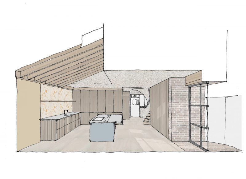 A new brick extension, thoughtfully inspired by the adjacent Victorian warehouse, mirrors the industrial saw-tooth roof profile, creating a sculpted kitchen and living space. This area opens generously to the sun and garden, enhanced by a large triangular rooflight that floods the space with natural light. The architects’ sensitivity to context shines through as they seamlessly blend this contemporary addition into the conservation area’s character as well as the nearby industrial warehouse buildings.