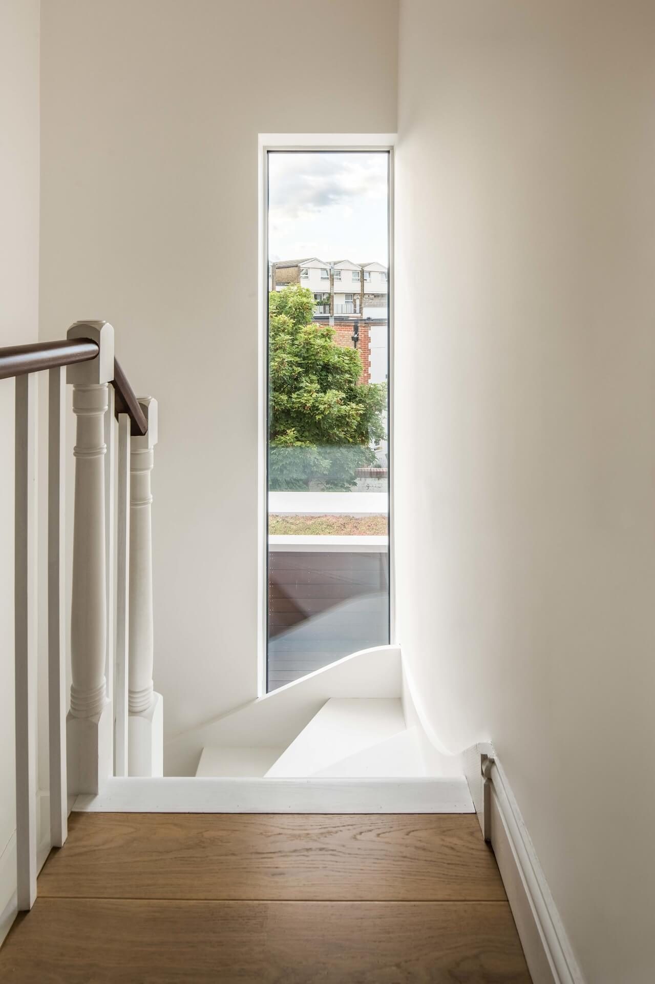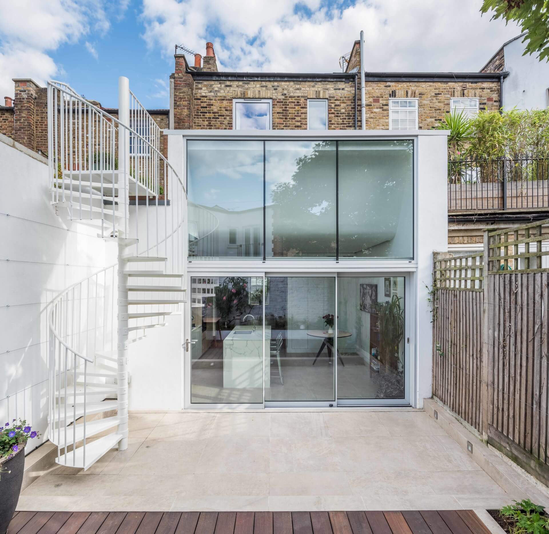 It was built for a young family. The project is located in the middle of a specific row of terrace buildings on the junction of two roads. The orientation of the rear garden faced north-west and at ground level the opportunities for getting natural light into the deep plan was a challenge.