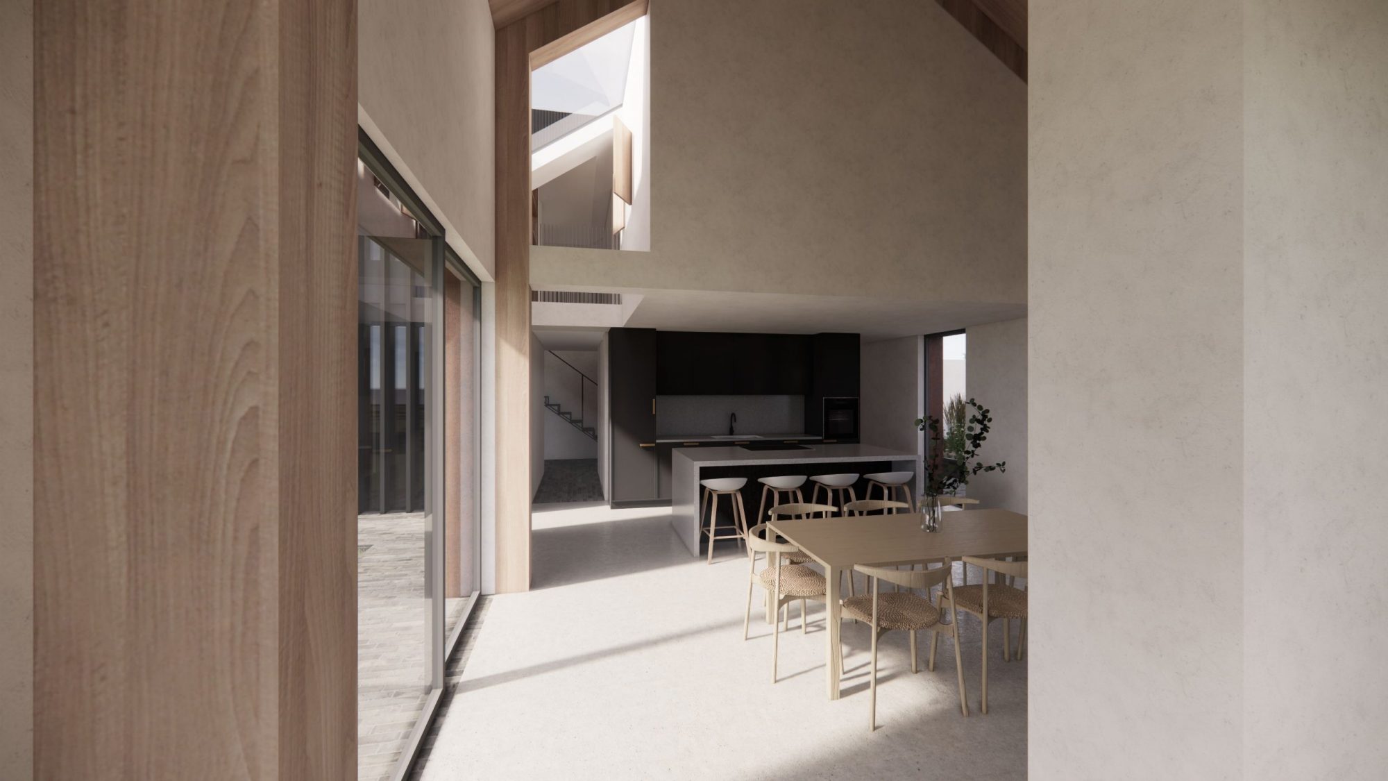 The new home is designed to provide a high-performance building envelope that will minimise energy usage and carbon emissions. The extensive use of timber reduces embodied energy, and the ground floor slab will be piled to reduce the volume of concrete and minimise the impact of excavation of the ground. Heating will be fully electrified with high efficiency heat pumps, and provision has been made for PV energy generation.