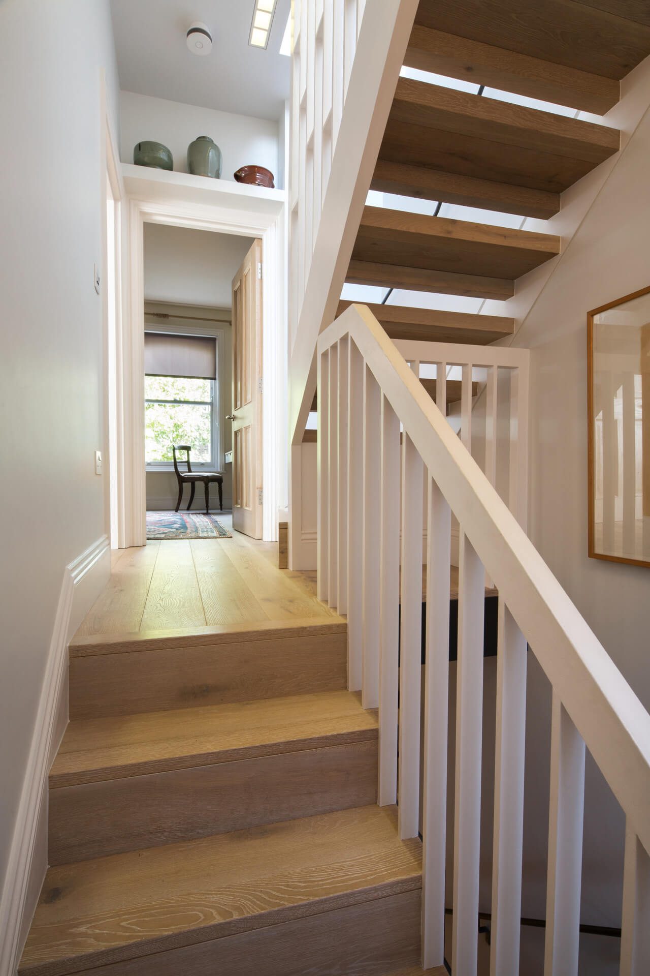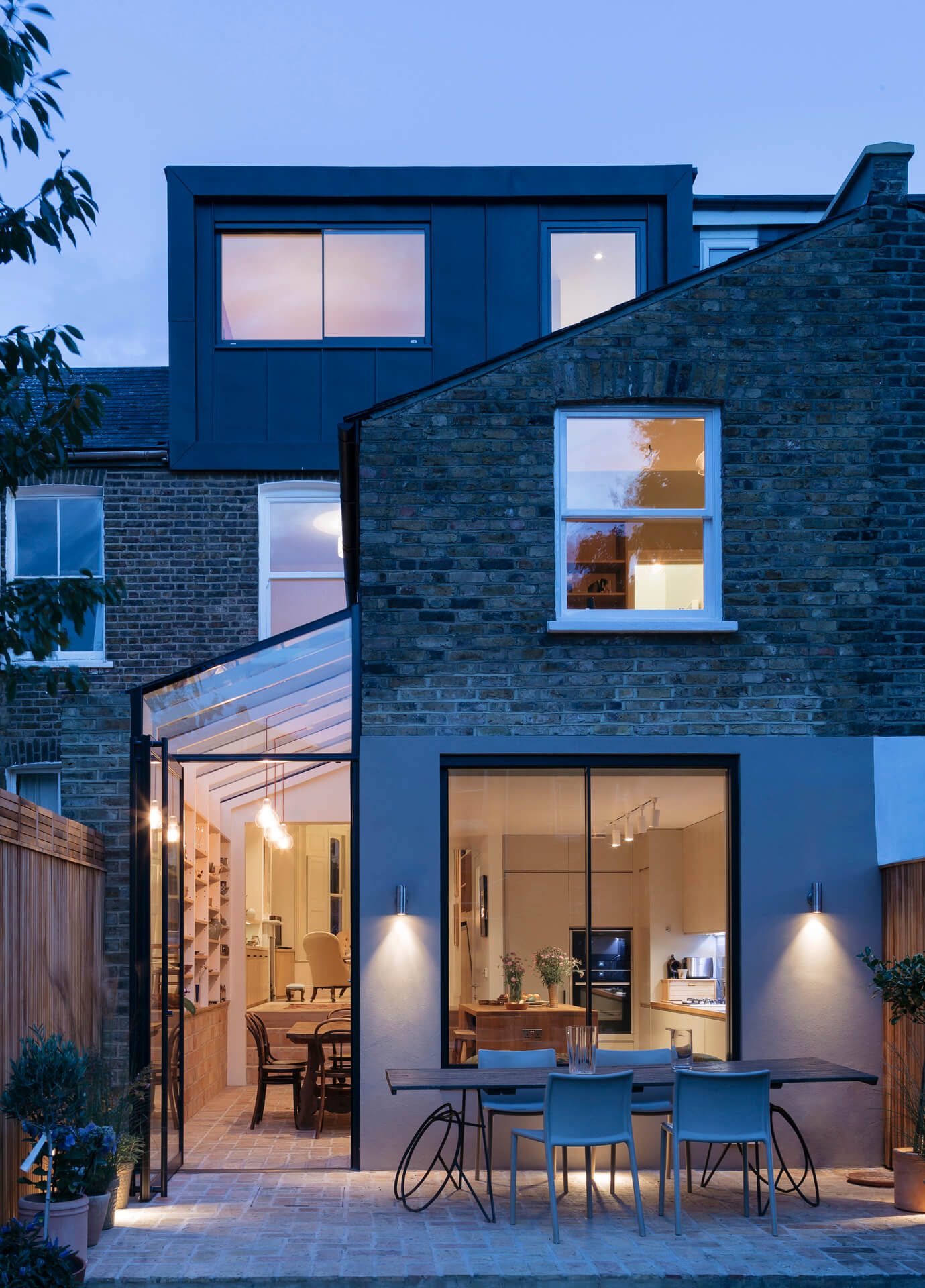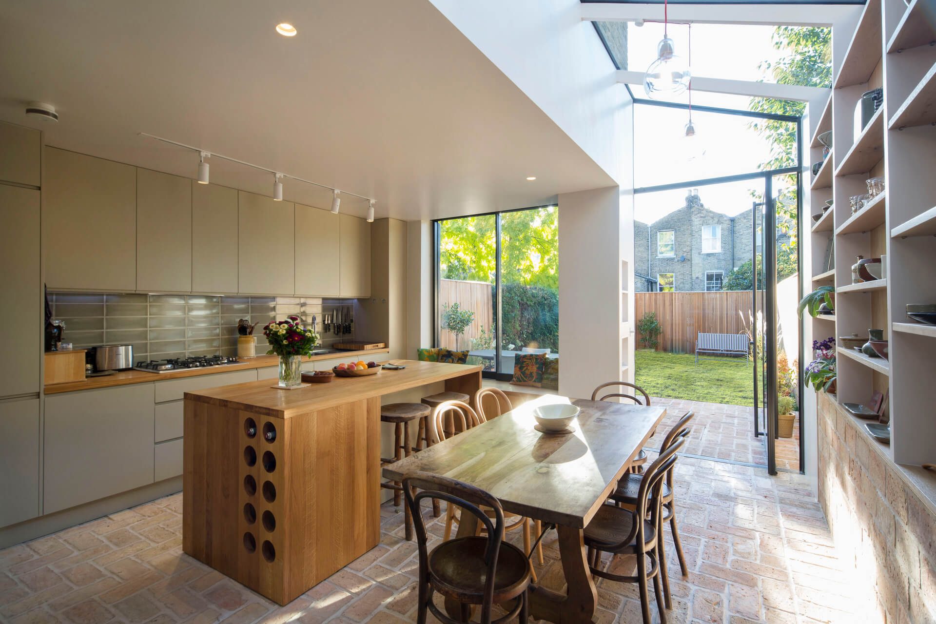 A fully glazed skylight to the side extension allows for increased light levels and improved connections between the spaces linking the front of the house to the rear garden.