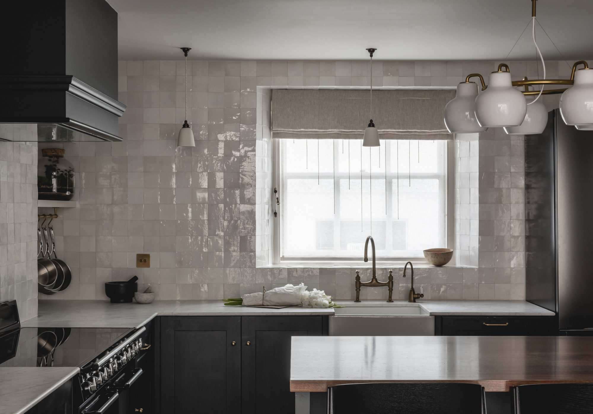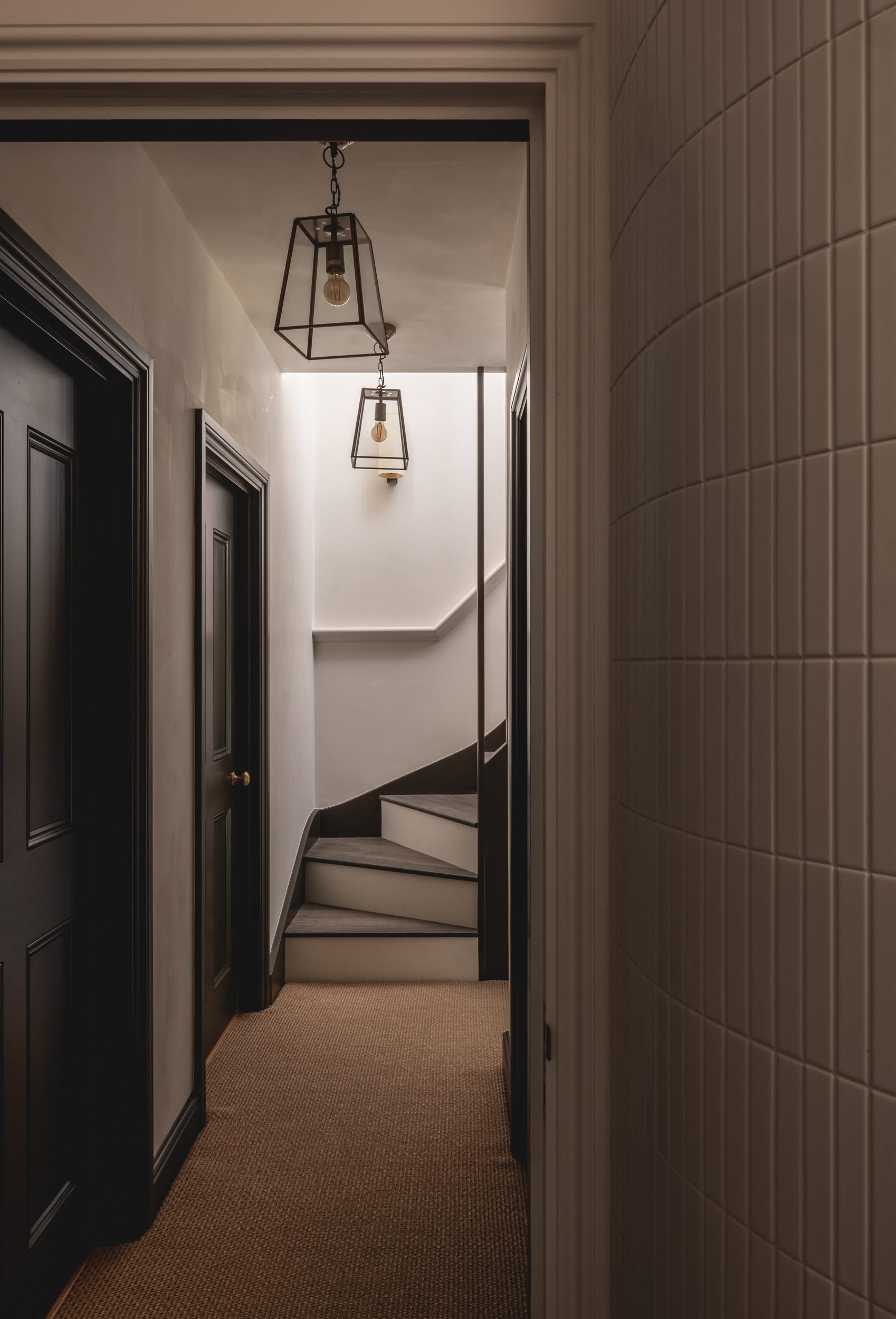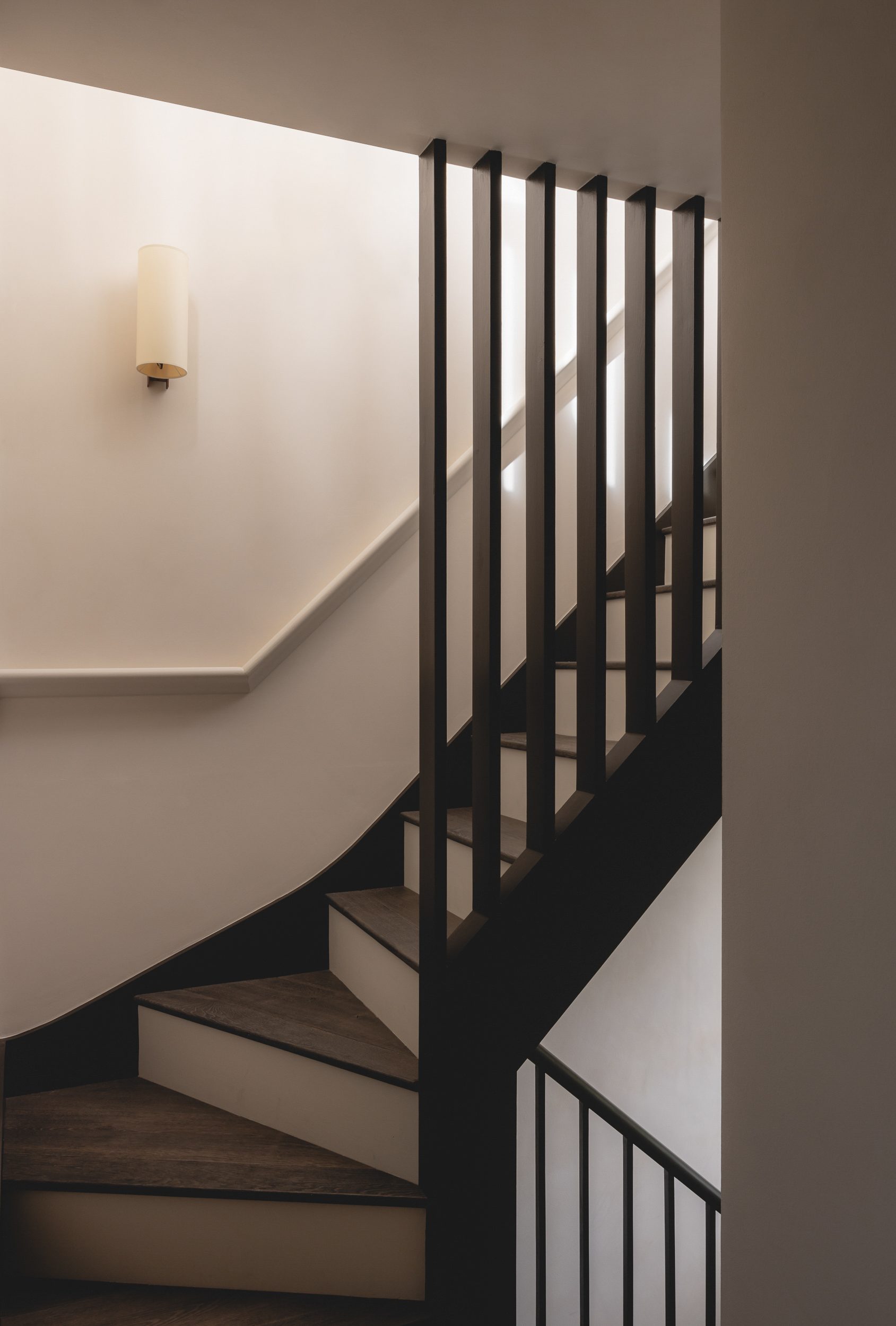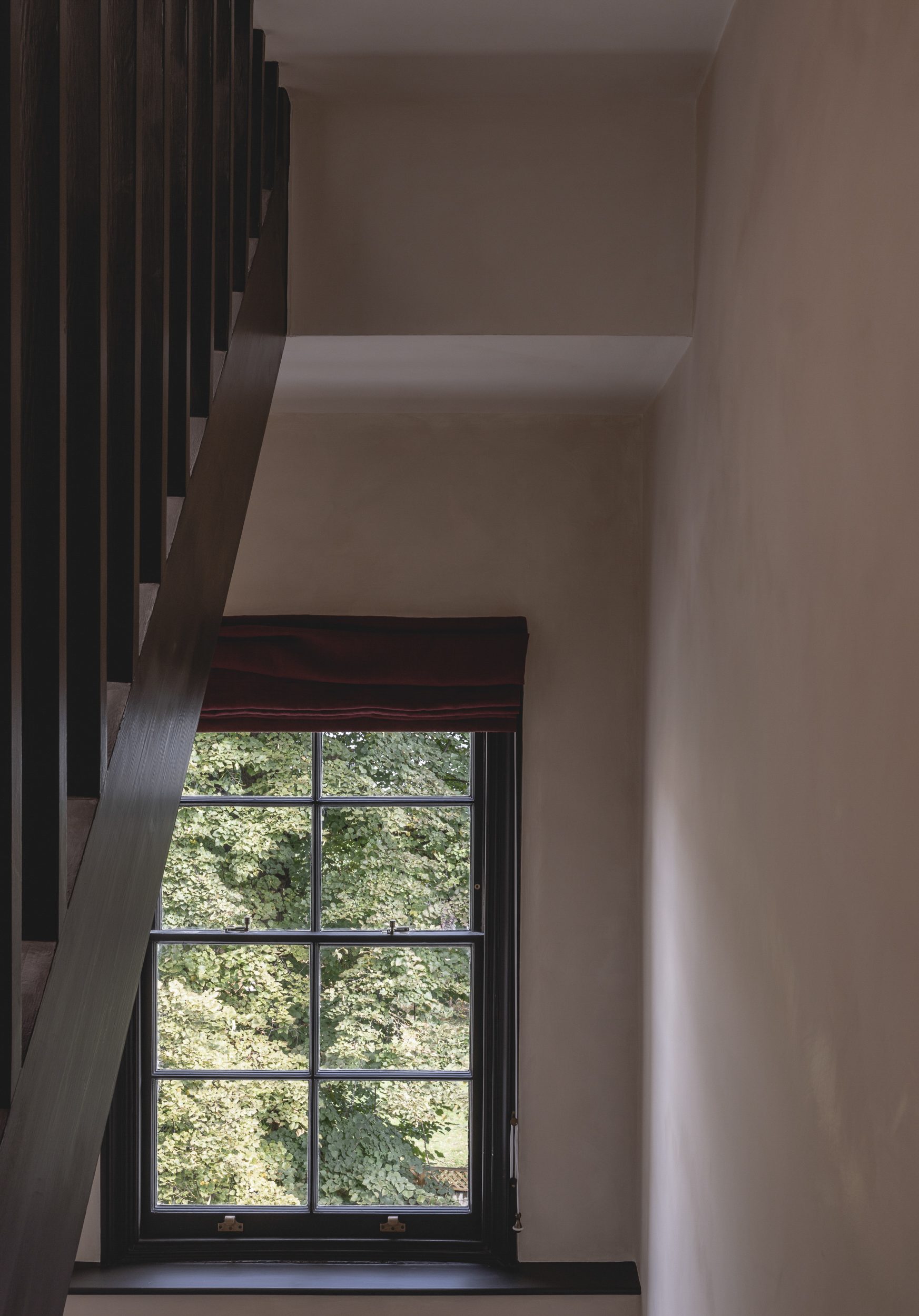 Neil Dusheiko Architects have carefully restored and enhanced each room’s original proportions and character on the principal floors. Where possible window openings to the rear of the house have been enlarged to bring more daylight in, and poorly-considered additions such as a shower room adjacent to the main living area have been stripped out. Great care has been taken to restore or reinstate features such as period fireplaces, sash windows, plaster mouldings and ironmongery, and these are now juxtaposed with crisp new joinery that helps to restore the interiors’ sense of balance and spatial harmony. New bathrooms throughout the home are bold and luxurious – providing a pleasing contrast with the restored period character of the house – and a new WC tucked into the staircase is an excellent example of how Neil Dusheiko Architects have made best use of every conceivable space.