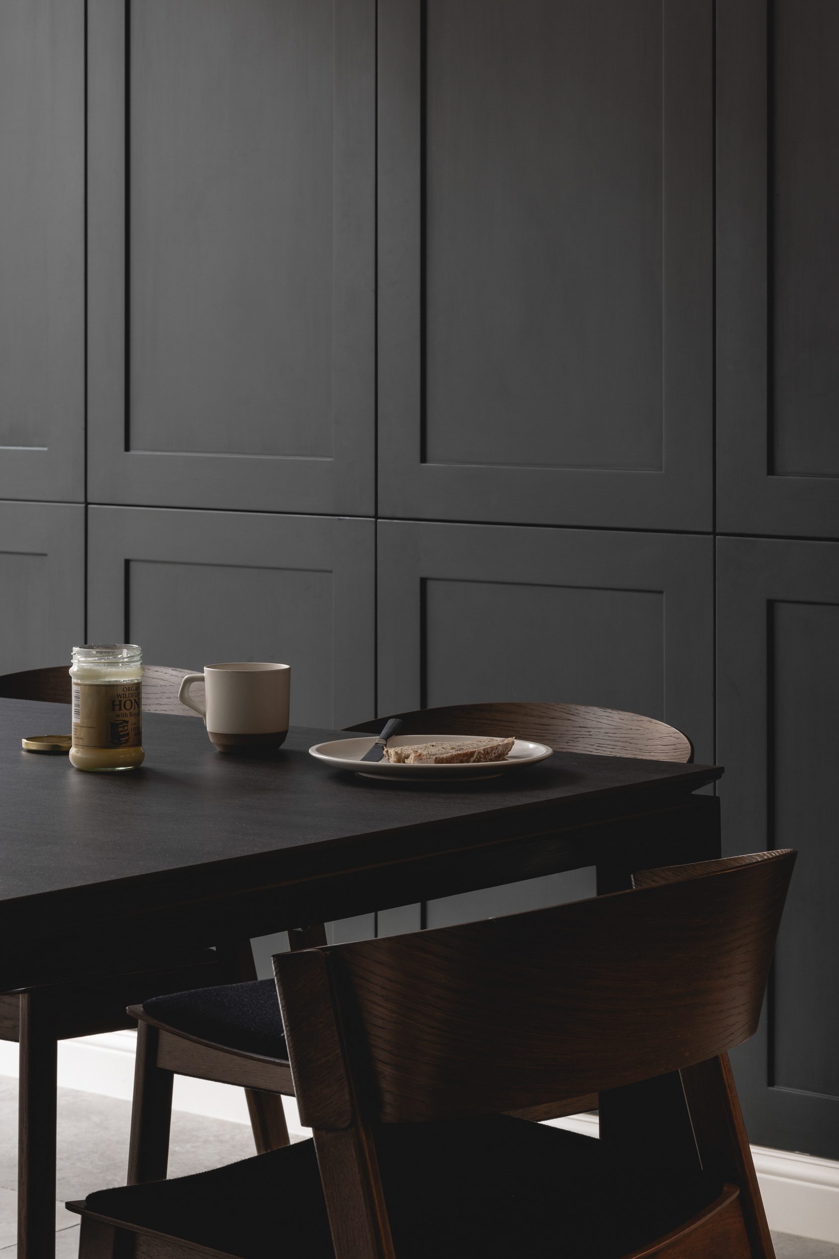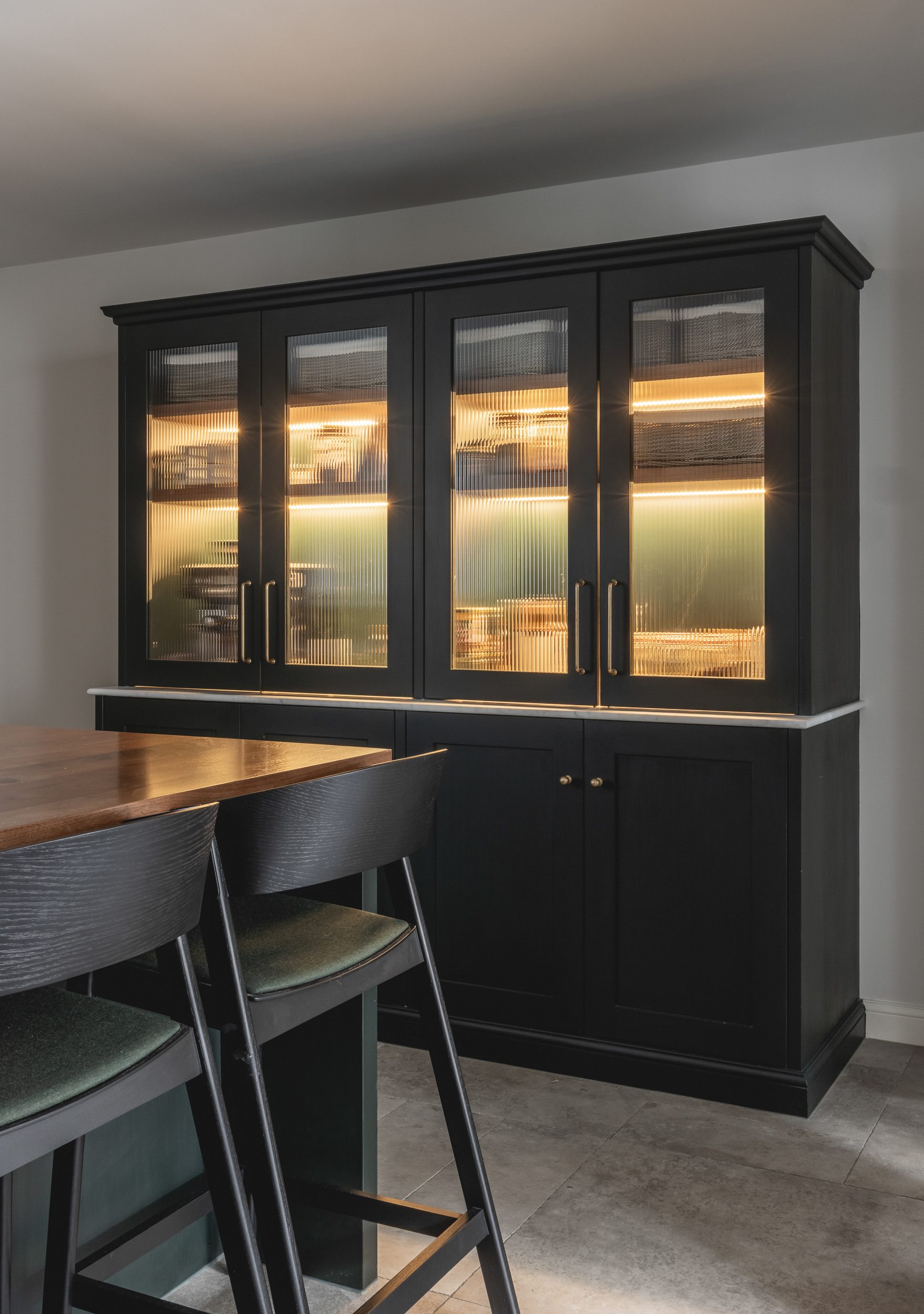 A key design driver was the improvement of circulation and flow throughout the house to suit contemporary living, and to maximise the use of all available space. On the lower ground level, a cramped and cellular arrangement was opened up by removing some internal partitions to create a large open plan family kitchen and dining area. Glazed folding doors open from the kitchen onto what was a gloomy lightwell, now re-purposed as a cosy outdoor dining room. The former cellars have been brought back into use as valuable storage space.