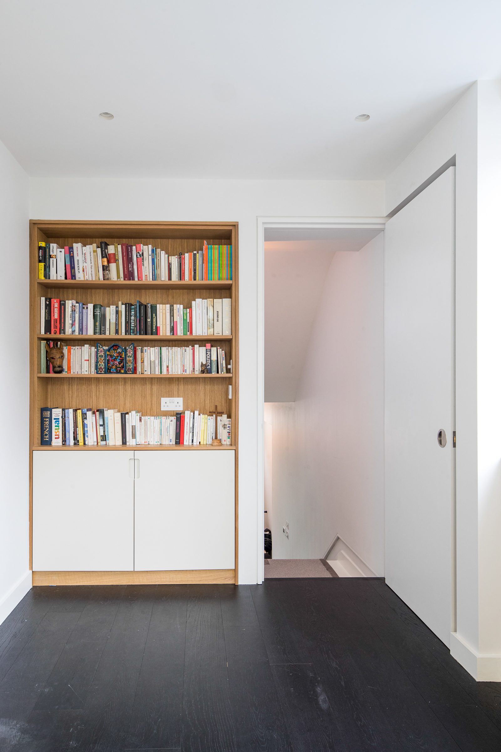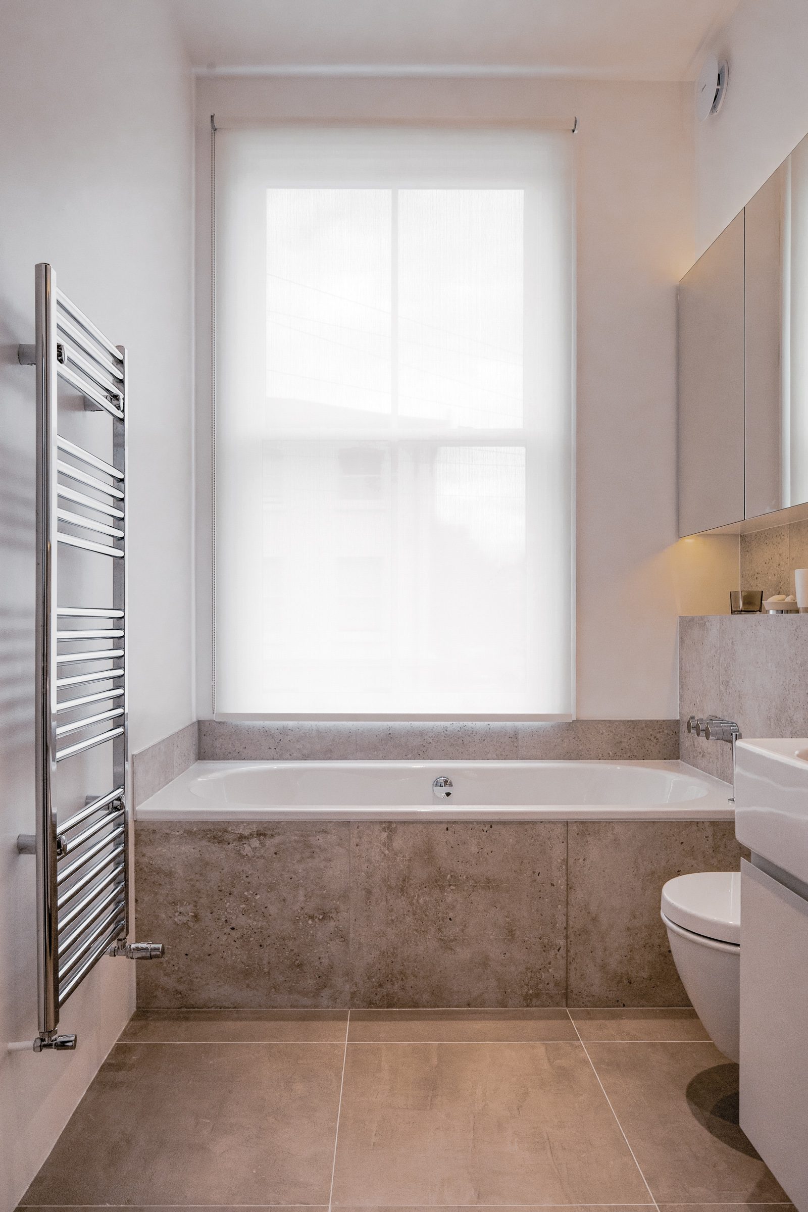 The material contrast from exterior to interior offers a sense of calm to the domestic space within the building, with a reconfiguration of space adding a new cloakroom at ground floor, family bathroom to the first floor, en-suite to the master bedroom, and an additional bedroom on the second floor. The proportions of the served and servant spaces have an inherit split which is evident within the scale of the larger entertaining and relaxing spaces apposed to the bedrooms and hotel-style en-suite/utility spaces.