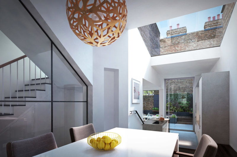 The project has a similar context to our Brackenbury House. The extension sits on a corner of an end of terrace house and is a substantial remodelling and extension to provide accommodation for a family of four.